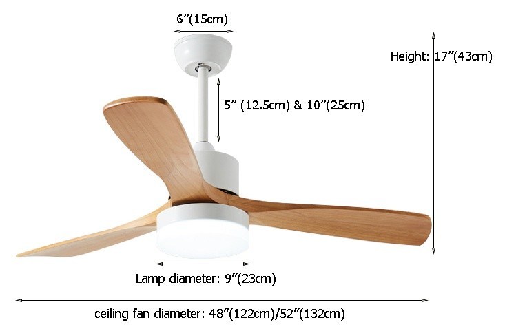 Αυτός ο ξύλινος ανώτατος ανεμιστήρας με το φως έρχεται σε δύο μεγέθη: